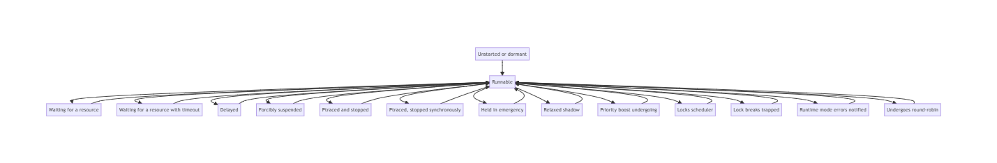 在 Cobalt 的实时内核中,线程调度状态使用一系列符号来表示每个线程的当前状态。各状态如下所述: