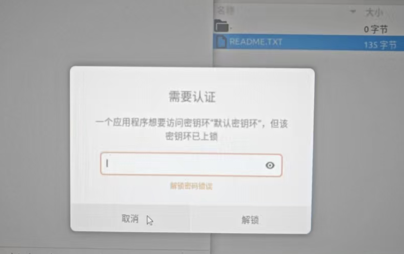 一般是客户忘记了设置的密钥环密码