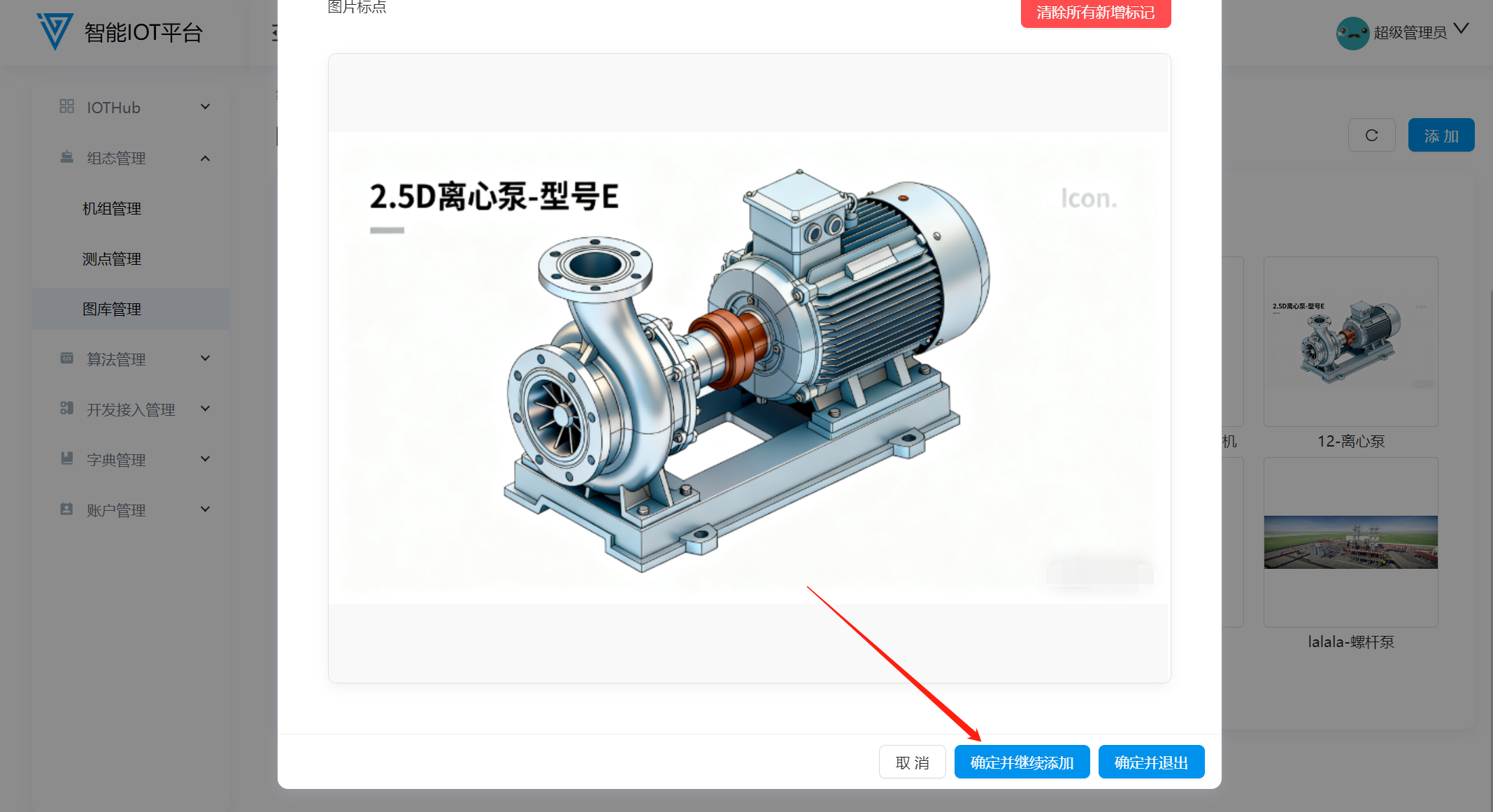 添加保存时,点击“确定并继续添加”按钮,保存当前图片信息,弹框不消失,填写内容不清除,更改图片名称,可继续进行添加
