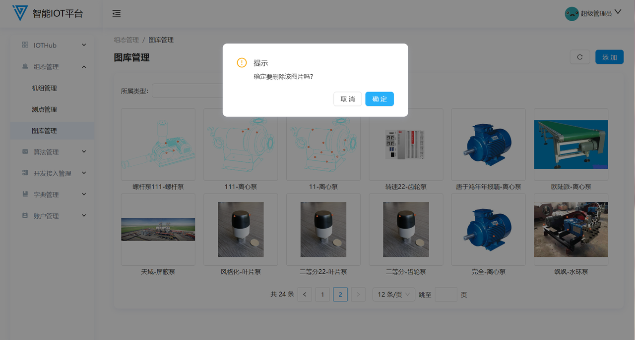 已添加的IOT网关,在未绑定点位信息时,可进行删除操作,若已绑定点位,需解绑点位后才能删除成功。点击网关列表操作栏的“删除”按钮,即可对选中IOT网关进行删除操作,删除操作需二次确认。