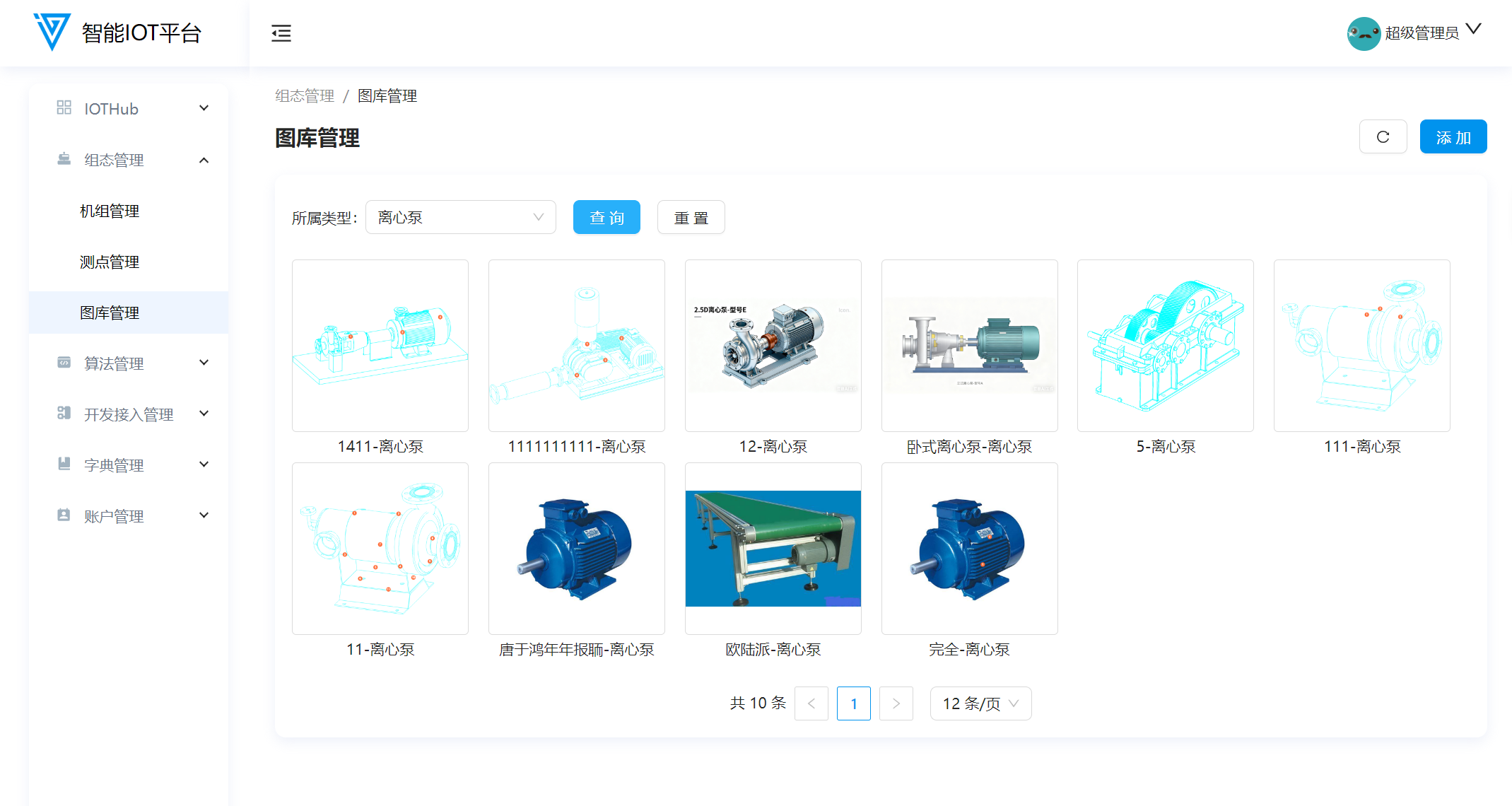 机组管理模块,可以进行机组的添加、编辑、删除、测点添加、机组详情查看操作。