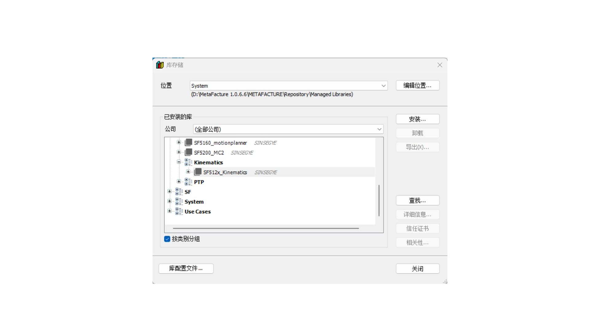 选择 Kinematics 库,点击“删除库”卸载库文件。