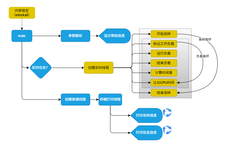 该教程和源代码参考应用程序定义了多个命令行参数,用于控制执行流程。这允许通过不同选项来实验,影响实时操作。这些选项包括:采样和工作负载迭代的次数、要分配的内存块大小、是否作为实时优先级线程运行、是否锁定内存、让出系统事件的时间间隔,以及是否通过改变间隔来建立固定的循环时间节奏。
