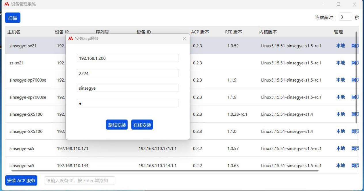 安装ACP 服务(以工智机(192.168.1.200)为例),选择“在线安装”;