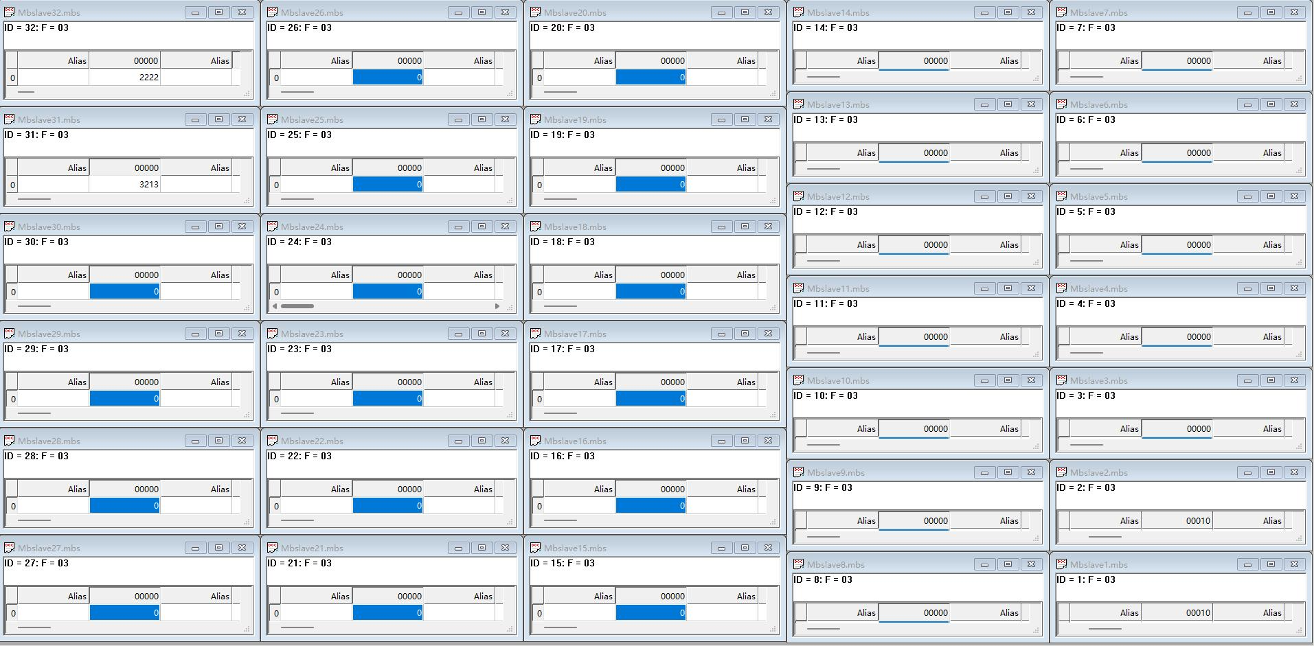 使用模拟软件配置32个Ascii从站(各个从站ID配置不一样),参考如下: